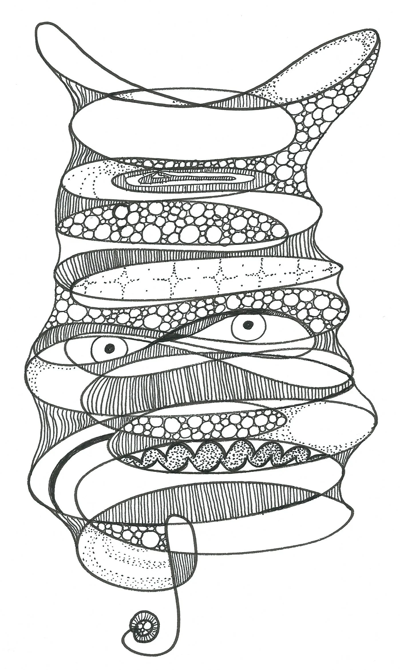 These are some of about a thousand pen and ink drawings I have done. Most are around 6x8 inches, although it varies. I use Pigma Micron pens in a variety of sizes. I don’t draw anything ahead of time - no pencil. What you see is how it came out of my brain.